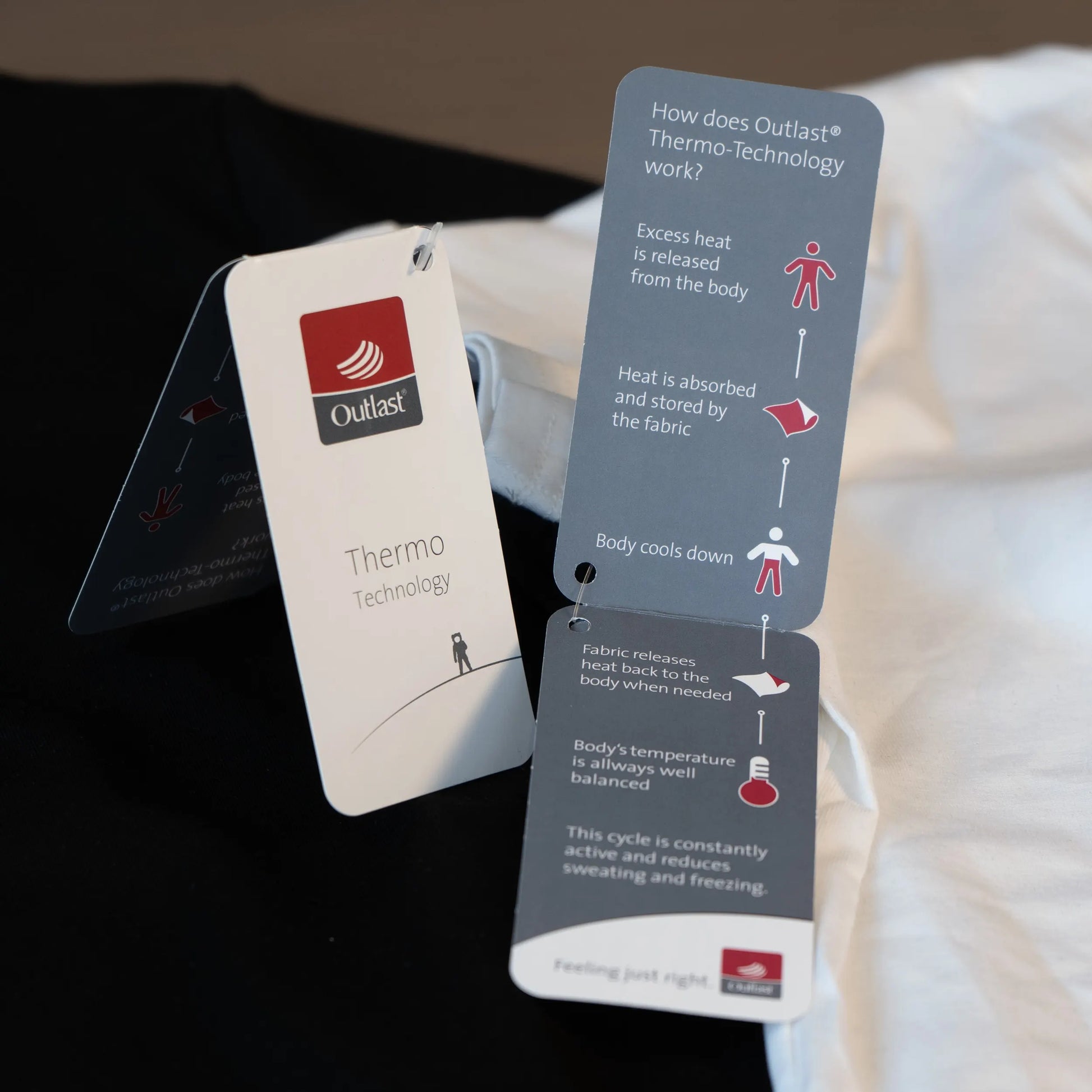 becomes chilled at different rates. Outlast® products reduce temperature swings and influence each person’s comfort zone efficiently. With Outlast® you feel not too hot, not too cold – but just right.